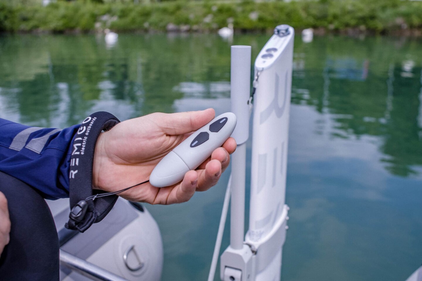 A smart Remote Control for RemigoOne and Neo outboards—use it as a standalone remote control or mount it on the tiller. One device, two intuitive ways to steer.