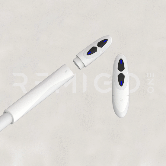Easily attaches and detaches from the RemigoOne handle with a secure magnetic coupling.